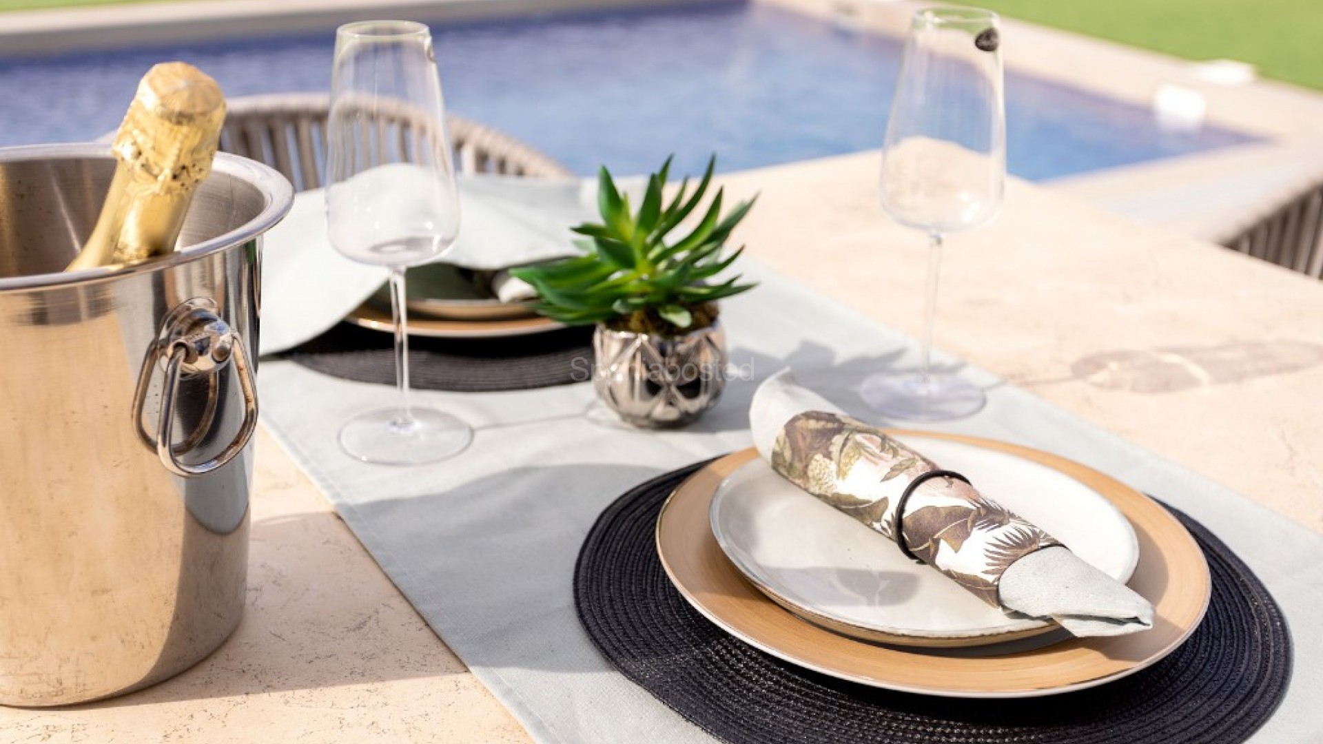 Med utsikt over bassenget