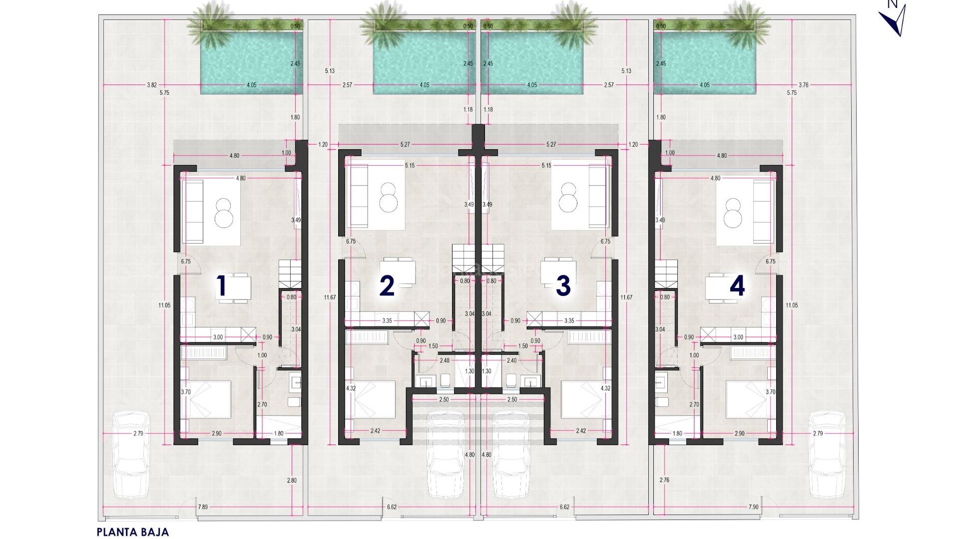 NEW BUILD VILLAS IN EL MOJON New Build moder villas with private pool in El Mojon, Pilar de la Horadada. Modern villas has 3 bedrooms, 2 bathrooms, open plan kitchen with the lounge area, fitted wardrobes, private solarium, private garden with the pool and off road parking space. The development is located in El Mojon, only 400m from the sandy beach and surrounded by all services, sports facilities, near several Golf Courses and 5 minutes far from Mar Menor beaches.